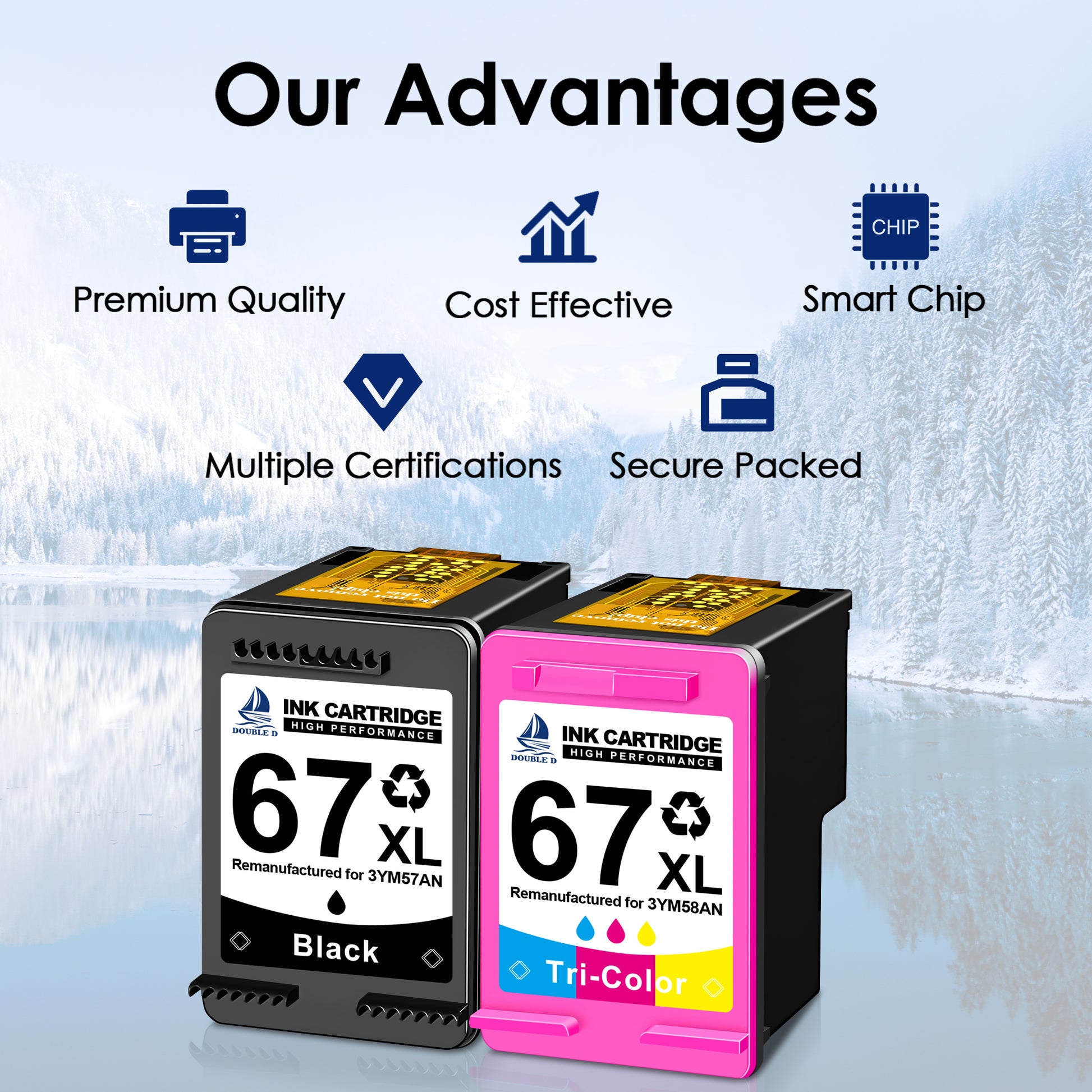 4. Double D 67 ink cartridges have passed multiple quality inspection standard certifications. Exclusive formulated ink ensure the vivid color vibrancy and long-lasting prints.