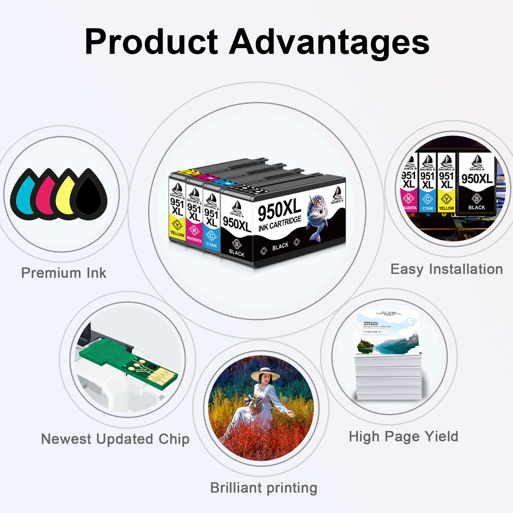 1. Each 950XL and 951XL ink was installed the first-class professional chip, which guarantee 100% compatibility with the printer.